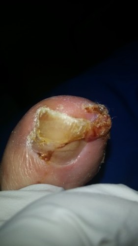 - Ingrown nail with localized cellulitis and proud flesh